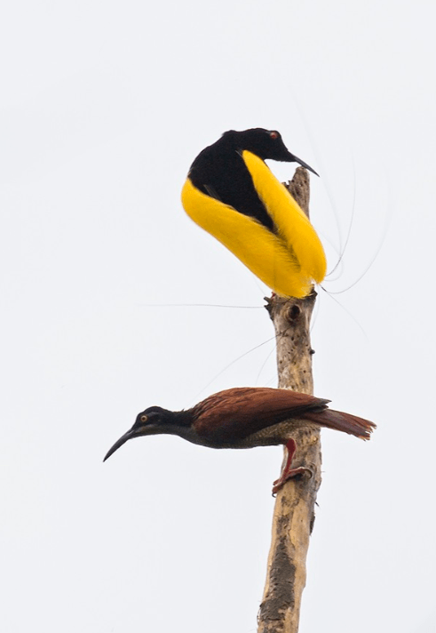 El ave del paraíso filamentosa, también conocida como ave de doce alambres es un de los pájaros más curiosos y extravagantes de la familia de las aves del paraíso, haciendo que tenga su propio género monotípico, diferenciándose del resto de aves de la familia Paradisaeidae.